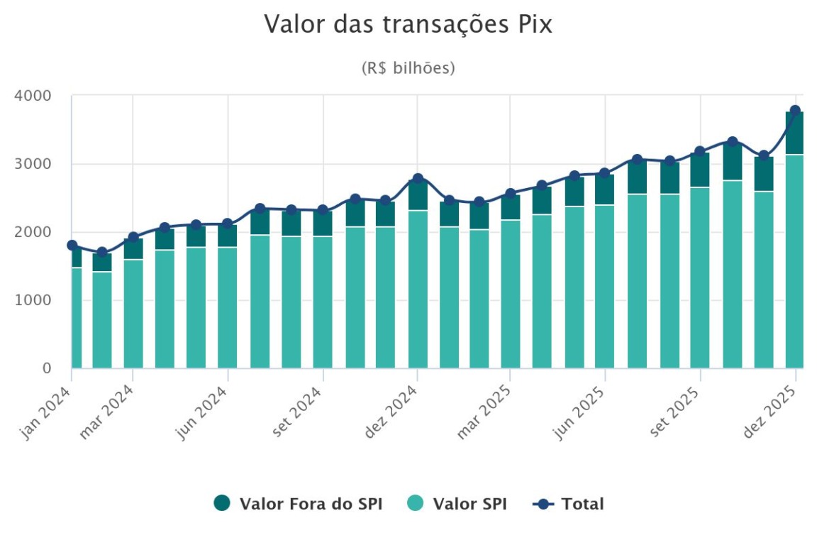 - O Pix movimentou R$ 35,3 trilhões em 2025, um crescimento de 33,7% em relação ao ano anterior, demonstrando sua forte expansão financeira.